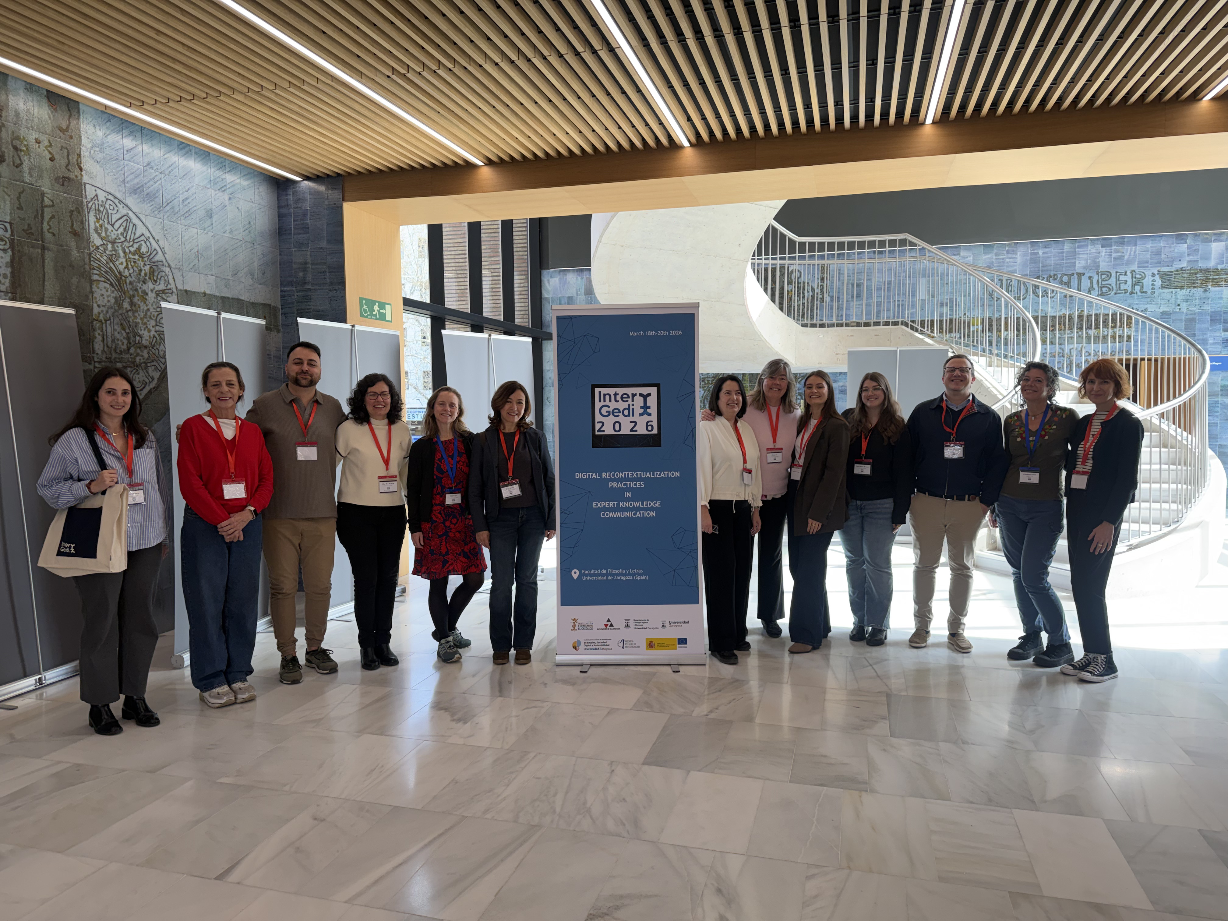 Last week, from the 18th to the 20th of March, our InterGedi 2026 International Conference took place at the Faculty of Arts (University of Zaragoza). It was themed around “Digital recontextualization practices in expert knowledge communication” and constituted one of the milestones to mark the end of our SciDis project: “Processes of recontextualisation in the transfer of knowledge: A pragmatic, linguistic and multimodal study of digital scientific discourse for dissemination purposes (SciDis)” (PID2021-122303NB-100).