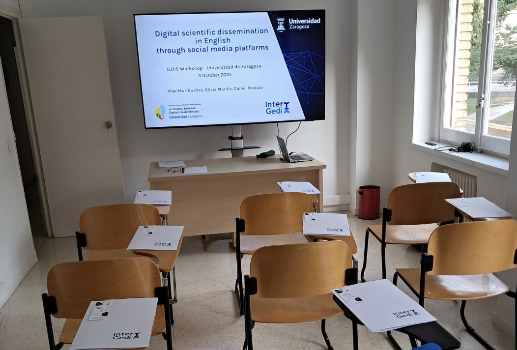 Last Friday the 3rd, October 2025, Dr Pilar Mur-Dueñas, Dr Silvia Murillo-Ornat and Dr Daniel Pascual ran a training workshop aimed at boosting the digital dissemination skills of other researchers from the University of Zaragoza (Unizar). The activities spanned four hours in the morning, in which participants learnt about research-based, multimodal strategies for communicating expertise in English in the digital sphere.